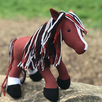The pony can be made from your pony's rugs or towels. She measures approx. 36cm/14” tall, and can be made sitting or standing.